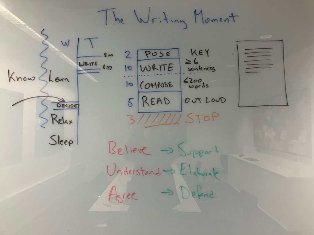 Writing makes our knowledge explicit by drawing on our ability to think and talk about the things we believe to be true. These beliefs contain propositions (which, as thoughtful people, we acknowledge may be false) that combine concepts and objects (see “How to Think”). We are able to write about them because we are “conversant” about their subject matter, that is, we’re able to hold our own in conversation with other knowledgeable people about them (see “How to Talk”). The challenge is to train ourselves in the art of selecting something to write about (constructing a key sentence) and the art of composing paragraphs (one moment at a time).
